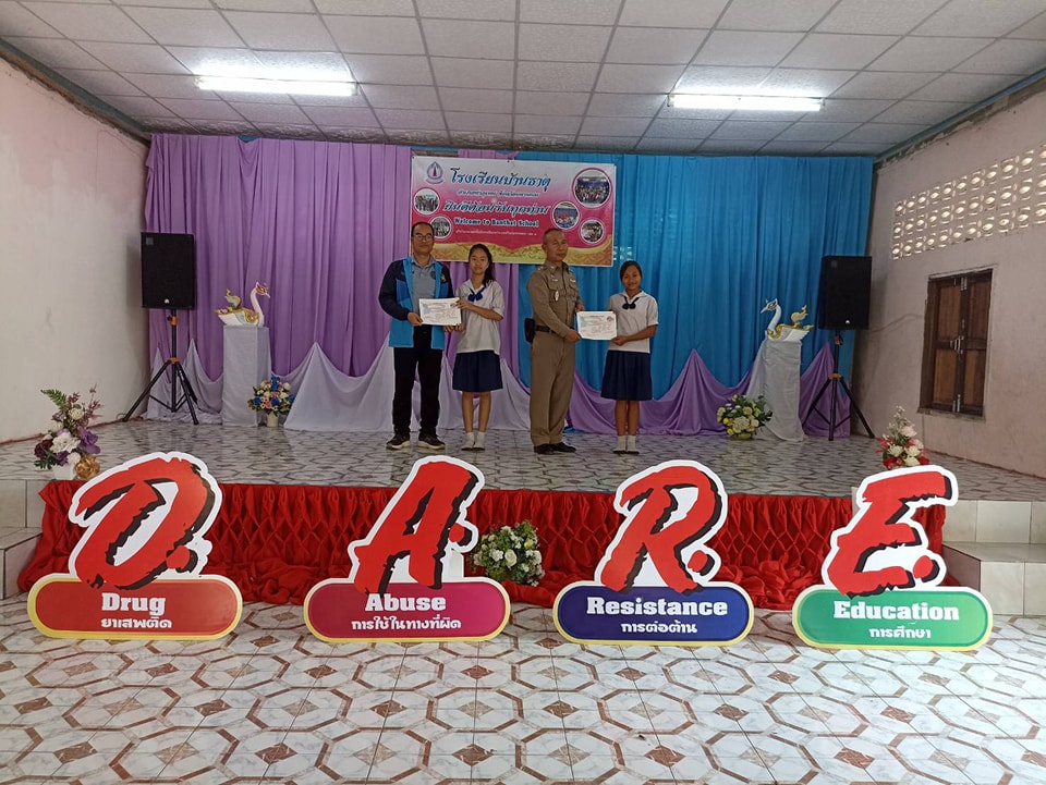 1.มอบประกาศนียบัตรให้นักเรียน d.a.r.e. ที่จบหลักสูตร ตามโครงการ การศึกษาเพื่อต่อต้านการใช้ยาเสพติดในเด็กนักเรียน (D.A.R.E.) ณ โรงเรียนบ้านธาตุ ต.โนนตาล อ.ท่าอุเทน จ.นครพนม