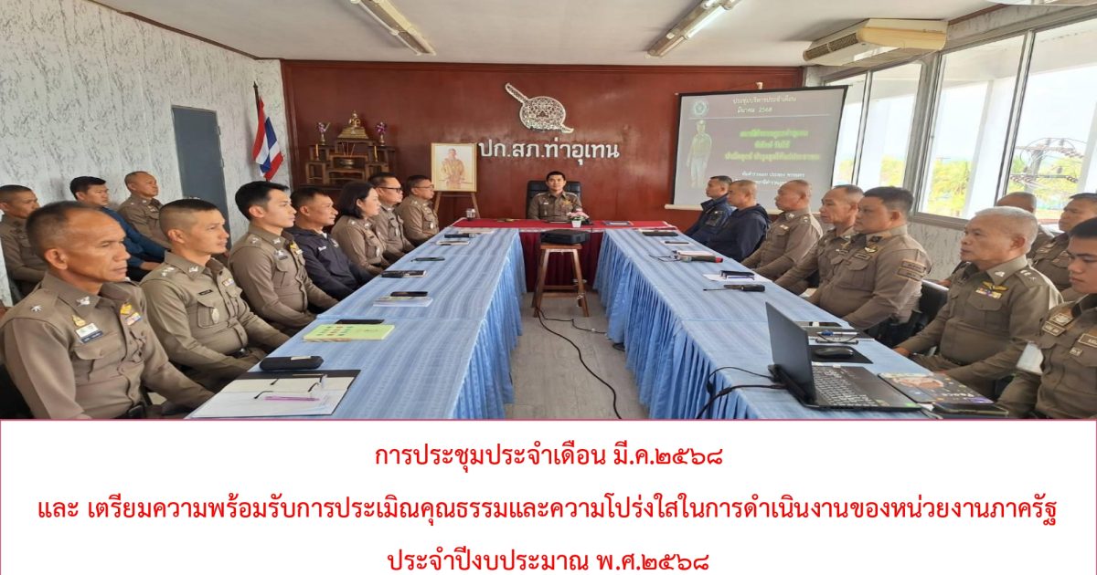 ประชุมประจำเดือนและประชุมเตรียมความพร้อมการประเมินคุณธรรมและความโปร่งใสในการดำเนินงานของหน่วยงานภาครัฐของ สภ.ท่าอุเทน ประจำปีงบประมาณ พ.ศ.2568