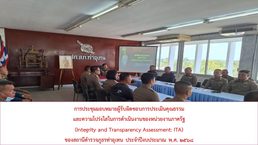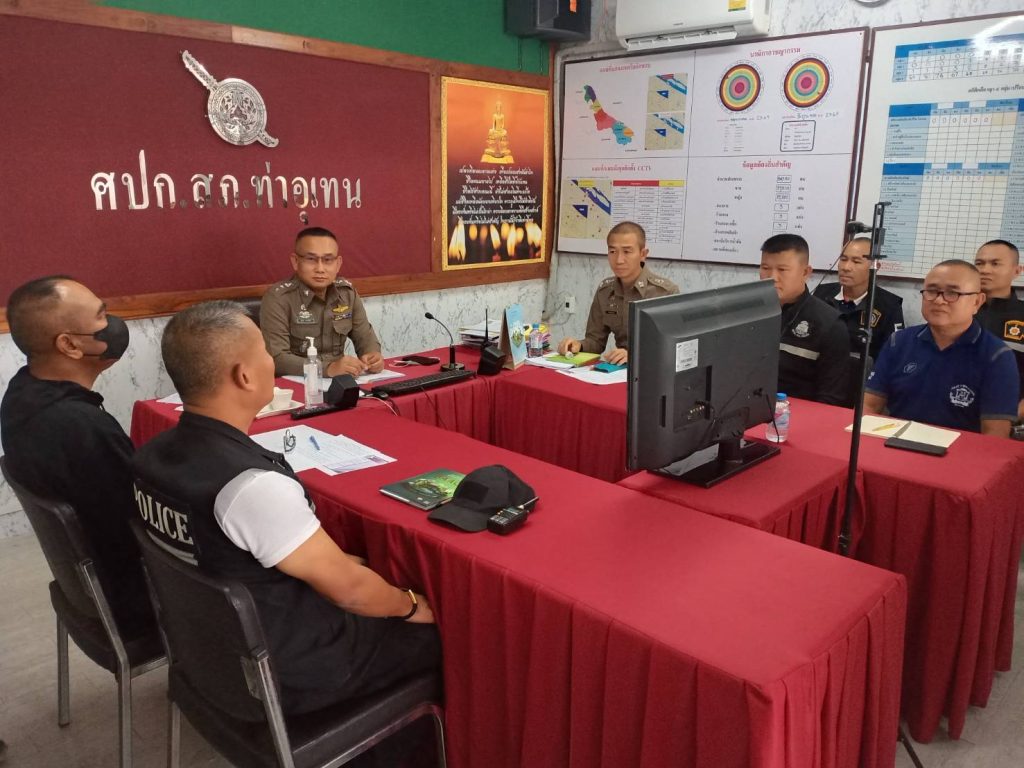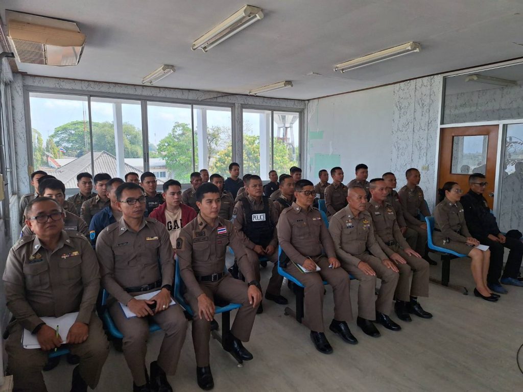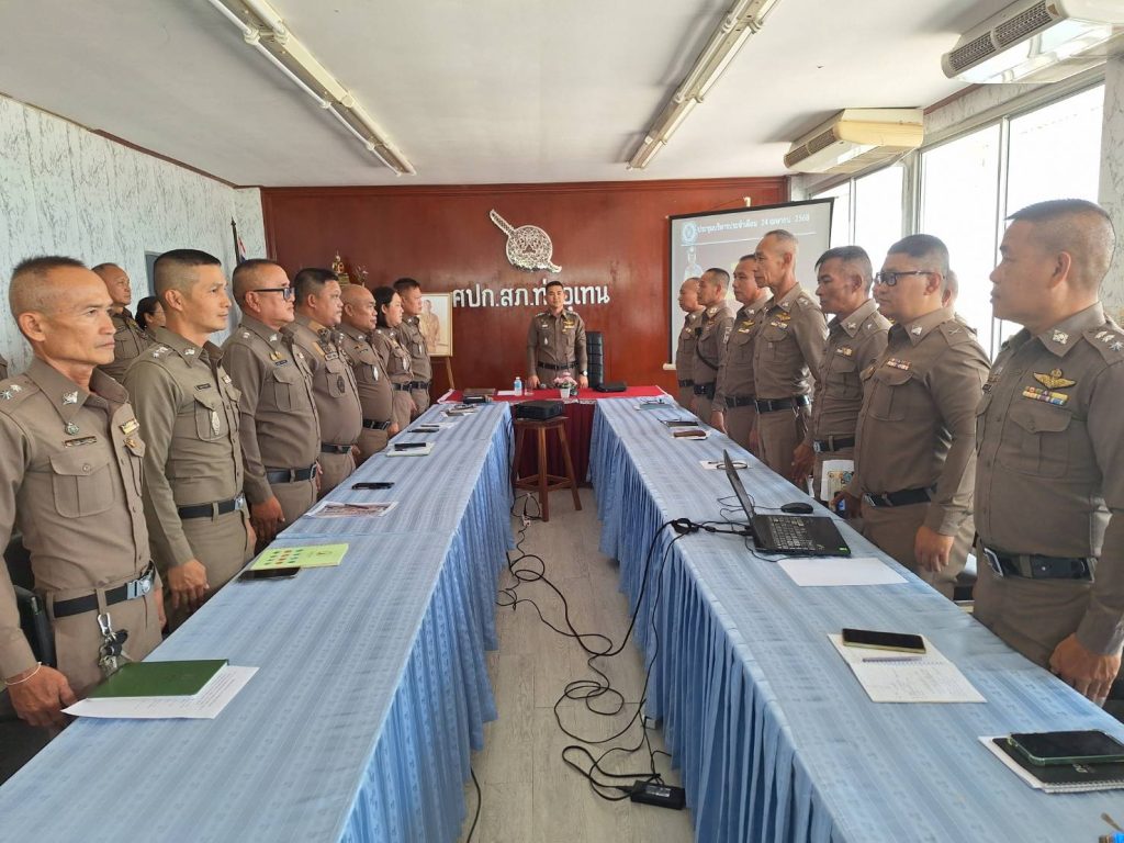 หัวหน้าสถานีตำรวจชี้แจงและให้ข้อมูลเกี่ยวกับการประเมินแก่เจ้าหน้าที่ตำรวจในหน่วยงาน